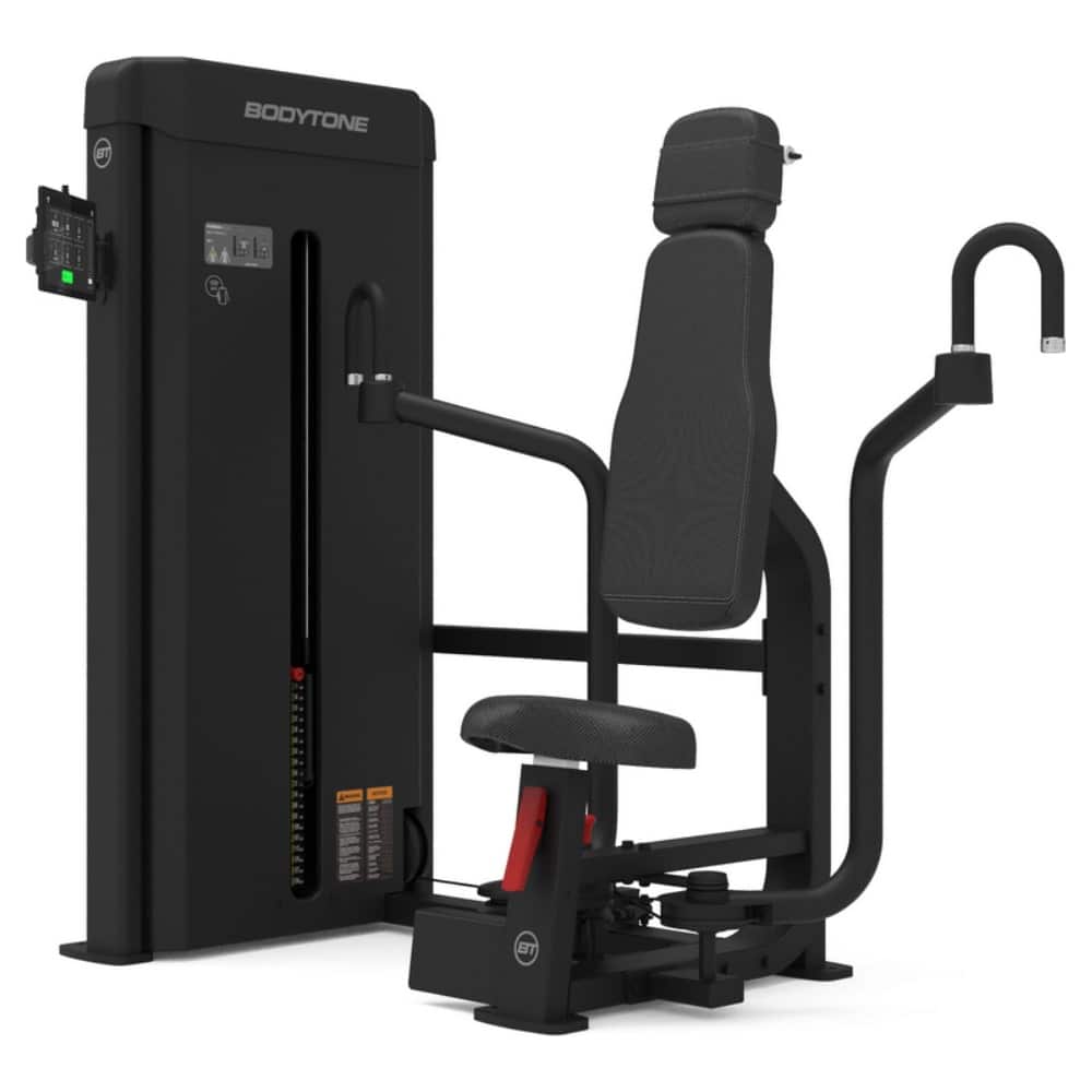 Bodytone Forza Bold Butterfly umožňuje jednoduchým a efektívnym spôsobom precvičiť prsné svalstvo. Elegantný tmavý dizajn sprevádzajú červené doplnky, ktoré označujú nastaviteľné časti stroja.