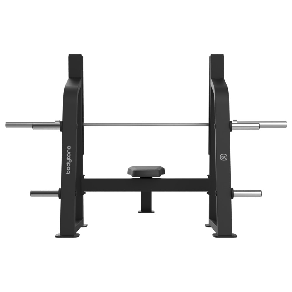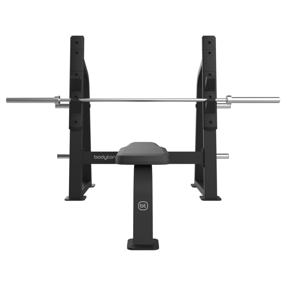 Bodytone Forza Bold Olympic Flat Press ponúka užívateľom možnosť posilňovať prsné svaly. Lavička ponúka robustnú oceľovú konštrukciu, maximálnu stabilitu, vysoký komfortvďaka anatomicky tvarovanej opierke a odkladací priestor na kotúče.