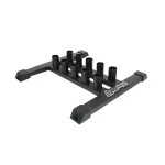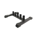 Gymleco kompaktný stojan uskladní päť pevných činkových osí a ponúka čiernu oceľovú konštrukciu s chrómovými držiakmi pre maximálnu odolnosť a stabilitu.