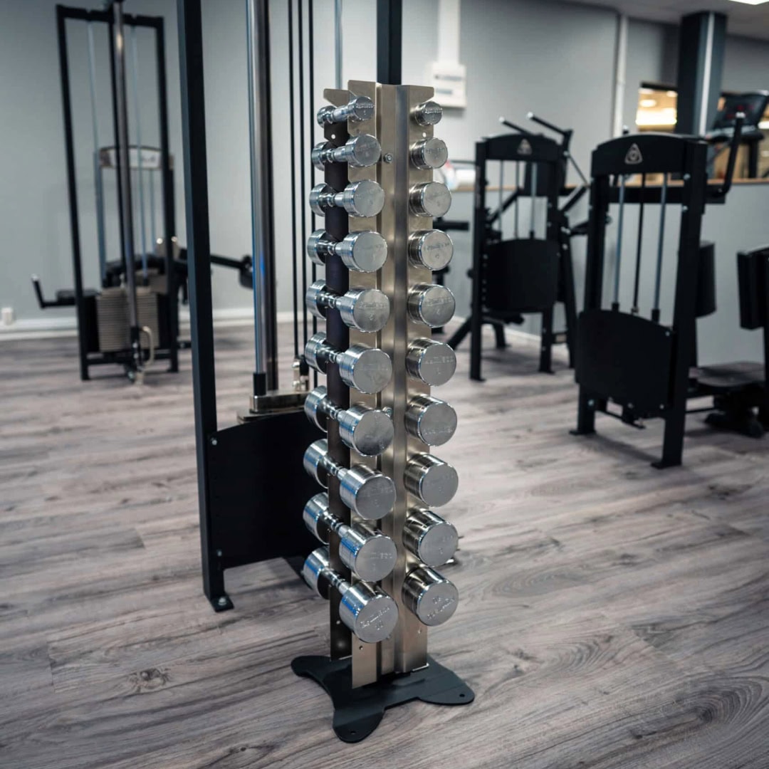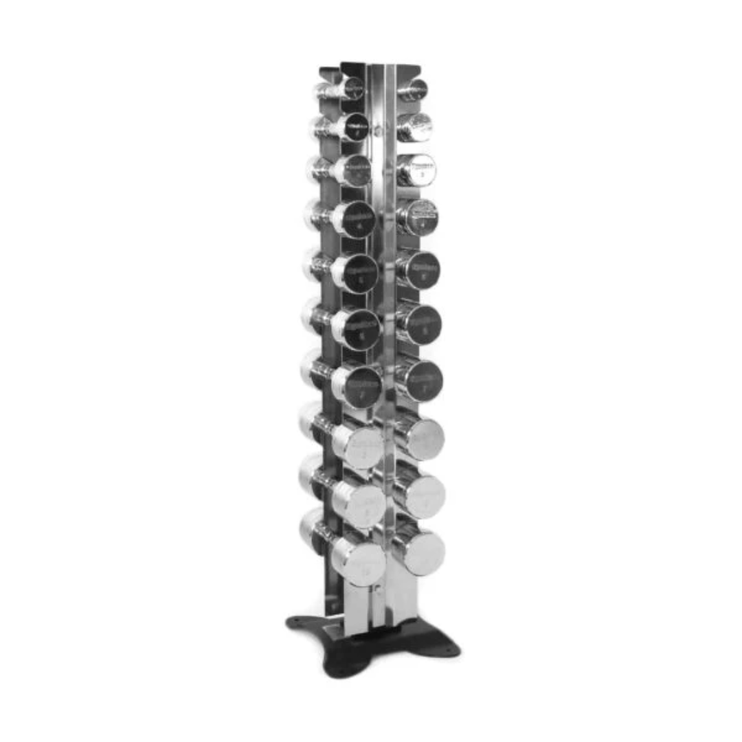 Gymleco Chrome Dumbbells s hmotnosťou 1–10 kg predstavujú prémiové riešenie pre profesionálne fitness centrá aj domáce štúdiá. Vďaka kvalitnej oceli a chrómovanému povrchu sú odolné voči opotrebovaniu a zároveň sa jednoducho udržiavajú. Ergonomicky tvarovaná rukoväť s protišmykovým vrúbkovaním zabezpečuje stabilný a pohodlný úchop pri každom cvičení. Na rozdiel od skrutkovaných modelov sú tieto činky odlievané ako celok, čo im zaručuje omnoho dlhšiu životnosť aj pri každodennom používaní v posilňovni. Ich kompaktný dizajn šetrí miesto a umožňuje efektívne usporiadanie v stojane. Vďaka presnej hmotnostnej kalibrácii sú vhodné na silový tréning, rehabilitáciu aj funkčné cvičenia. Tento model kombinuje estetiku s funkčnosťou a zaručuje dlhú životnosť aj pri intenzívnom používaní.
