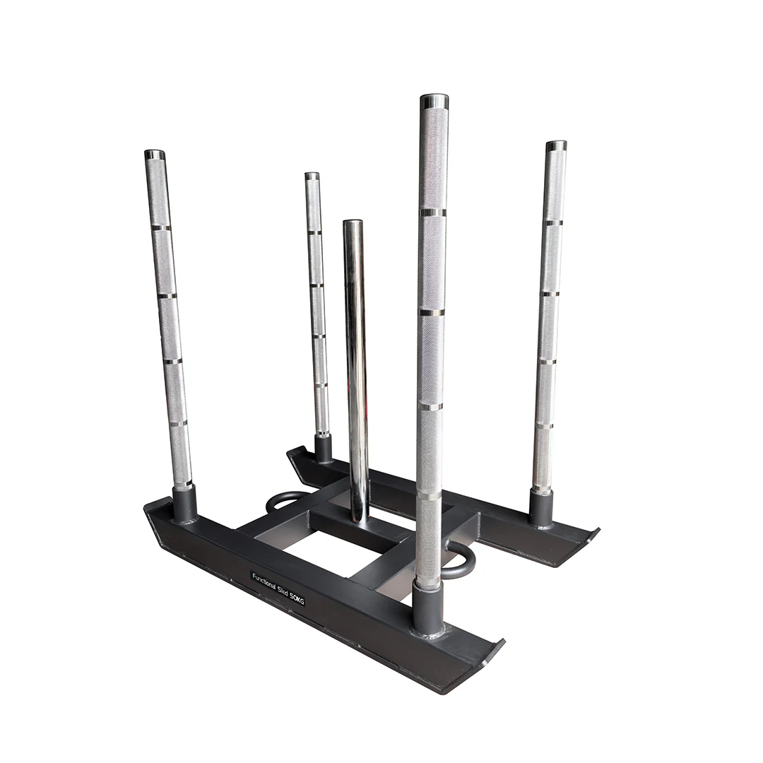 Gymleco Functional Sled je výkonný a všestranný tréningový nástroj navrhnutý na rozvoj explozívnej sily a celotelovej vytrvalosti. Konštrukcia z odolnej ocele komerčnej triedy zaručuje dlhú životnosť aj pri intenzívnom každodennom používaní. Päť odnímateľných tyčí umožňuje rôzne úchopy, techniky a variabilitu odporu podľa tréningového cieľa. Sane efektívne zapájajú nohy, boky, stred tela, chrbát aj paže pri každom tlačení a ťahaní. Sú ideálne pre funkčný tréning, kondičnú prípravu aj vysokovýkonnostné programy. Vďaka robustnému a čistému dizajnu sú vhodné na použitie v interiéri aj exteriéri. V kombinácii s ťažným lanom ponúkajú maximálne tréningové možnosti.