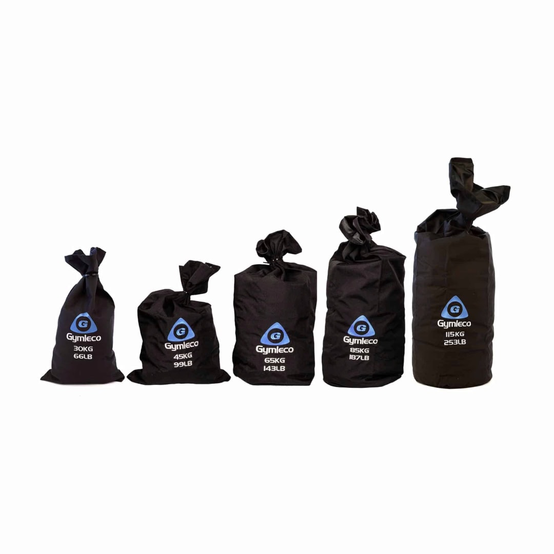 Gymleco Strongman Sandbags – nastaviteľné tréningové vrecia pre rozvoj funkčnej sily, úchopu a stability. Dostupné vo veľkostiach 30–115 kg, vhodné pre strongman, cross a silový tréning.