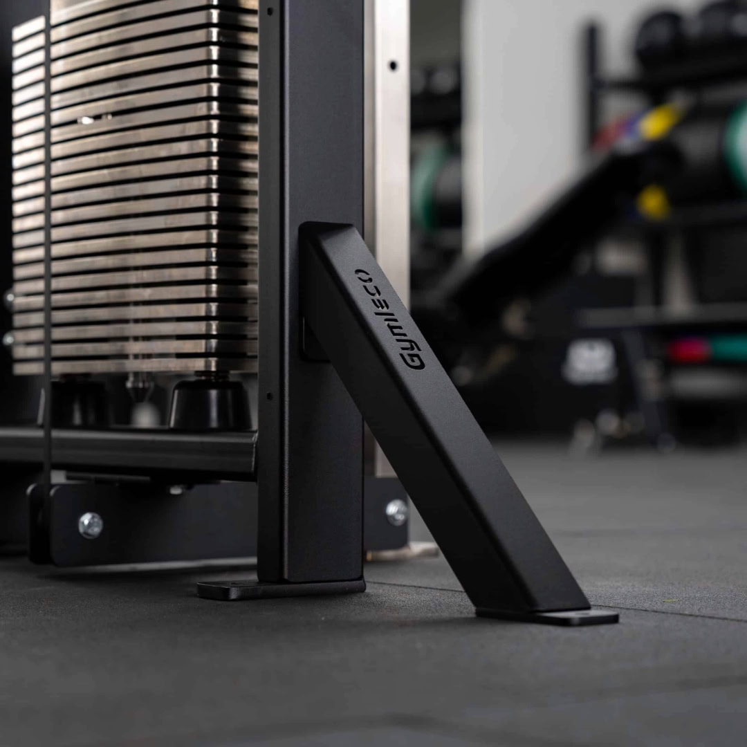 Sada stabilizačných nôh Gymleco zabezpečuje pevnú oporu multifunkčnej veže 225 bez potreby kotvenia do podlahy.