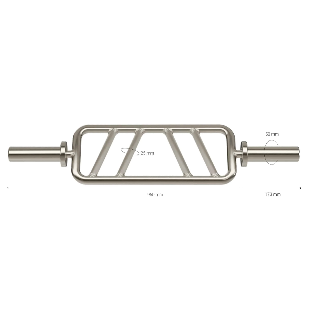 Tricepsovo-bicepsová tyč Gymleco je špecializovaná os, ktorá umožňuje efektívne precvičenie svalov hornej časti tela s dôrazom na paže. Dvojitý úchop v tvare V poskytuje variabilitu polohy rúk a umožňuje zmenu uhla zapojenia svalov, čo zvyšuje rozsah tréningových možností. Ergonomický dizajn znižuje nežiaduce zaťaženie zápästí a lakťov, čím podporuje prirodzenejšiu a bezpečnejšiu techniku. Robustné oceľové vyhotovenie zaručuje dlhú životnosť a spoľahlivosť aj pri intenzívnom komerčnom používaní. Rukávce s priemerom 50 mm sú kompatibilné s olympijskými kotúčmi a uzávermi, čo umožňuje bezproblémovú integráciu do štandardného vybavenia posilňovní. Táto tyč je ideálna pre profesionálne fitness centrá, silových športovcov aj tréningové programy zamerané na rozvoj rúk.
